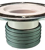 The PUSH & SHUV Metal Ring gasketed closet flange from Dallas Specialty connects to cast iron, PVC, ABS and lead. The flange is a flush type that fits flat on any floor. Just lubricate the gasket if needed, then push the flange into the pipe, and fasten it to the floor. It is a full opening flange with no obstructions like screws. The gasket is made of high-quality flexible PVC material that will never dry rot, and the metal ring will never corrode.