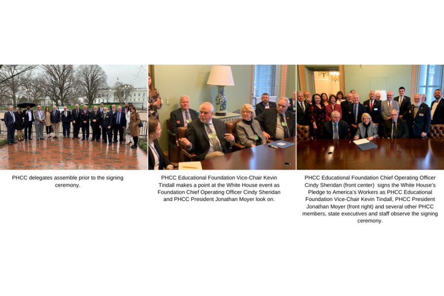 On Jan. 14, Plumbing-Heating-Cooling Contractors (PHCC) – National Association members, state executives and staff were invited to the White House for an exclusive PHCC ceremony celebrating the association’s commitment to the Pledge to America’s Workers.