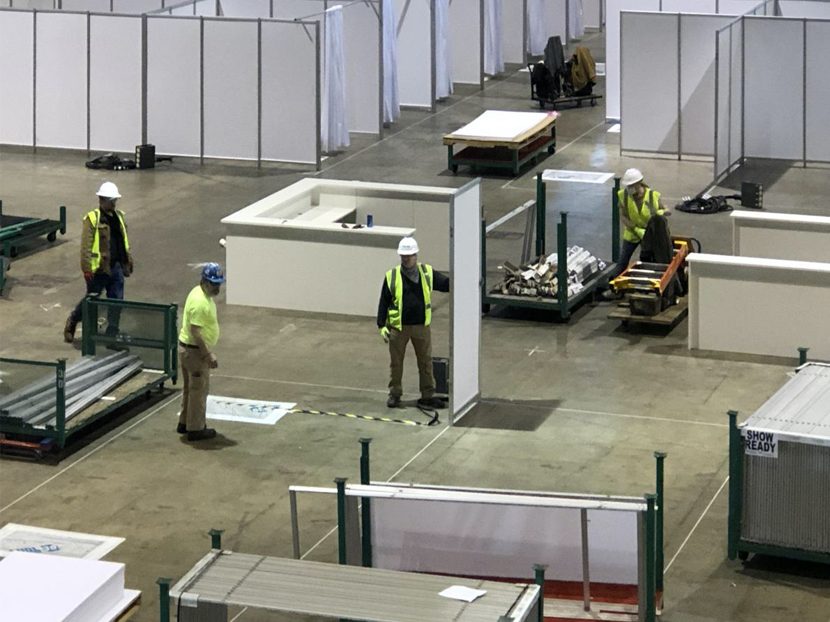 Members of the Chicago Regional Council of Carpenters (CRCC) have been working with the U.S. Army Corps of Engineers to convert exhibition halls at McCormick Place in Chicago into medical wings as part of the ongoing efforts to contain the spread of COVID-19. The union carpenters helped build 500 makeshift hospital rooms in the convention center's Hall C in just over two days. Another 1,750 rooms in Hall A are expected to be done within the same week.