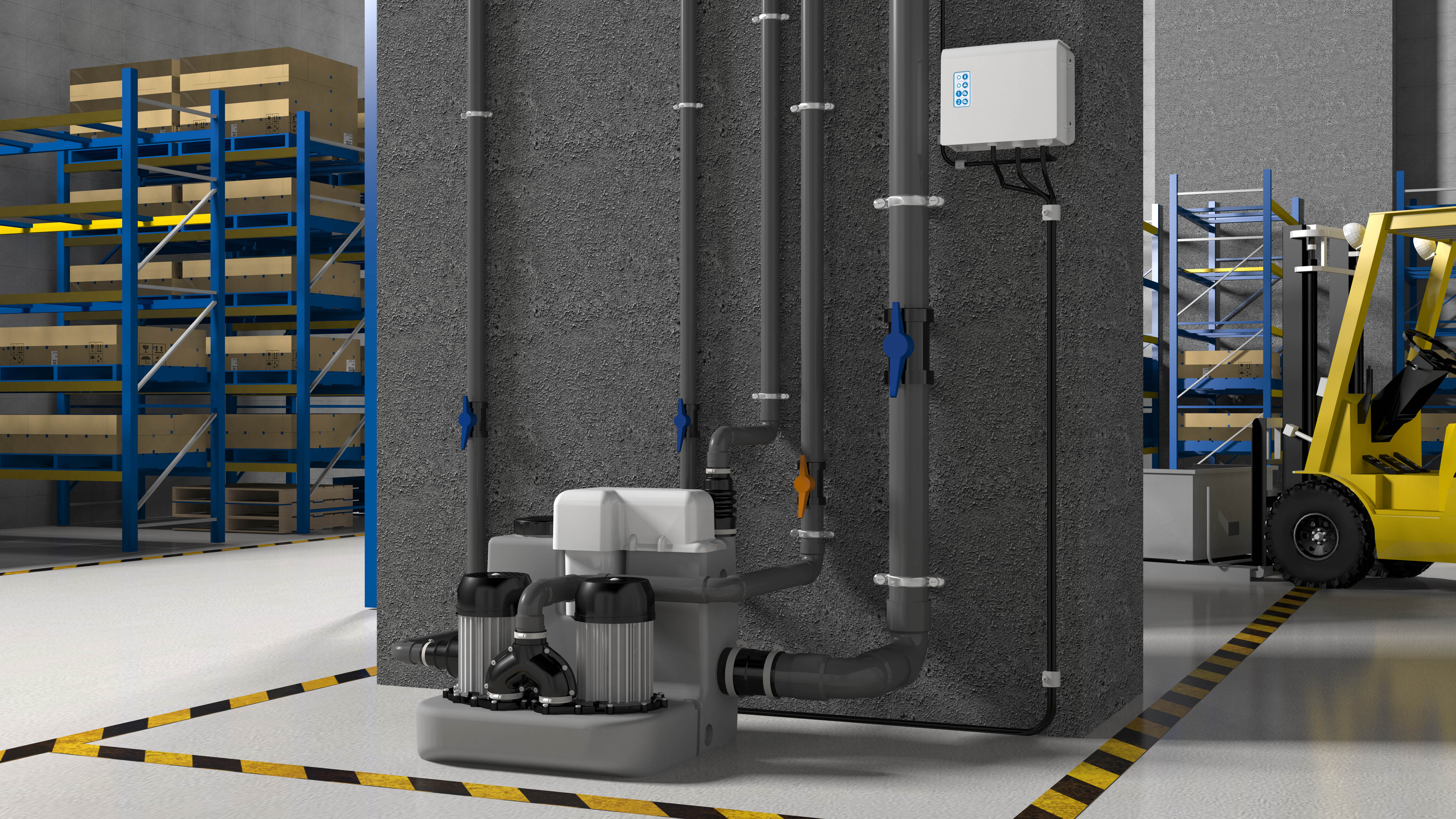 The Sanicom 2 is ideal for use in public or commercial environments. A powerful lift station can handle gray water from a sink, washing machine, dishwasher, shower, bath, sink and bidet. The Sanicom 2 is similar to the Sanicom 1 except it features two powerful motors where the second motor is a failsafe backup to ensure you have continuity of service. It has two inlets and it discharges through 1.5-inch pipework. Similar to the Sanicom 1, this duplex drain system can handle water temperatures up to 194 degrees Fahrenheit.