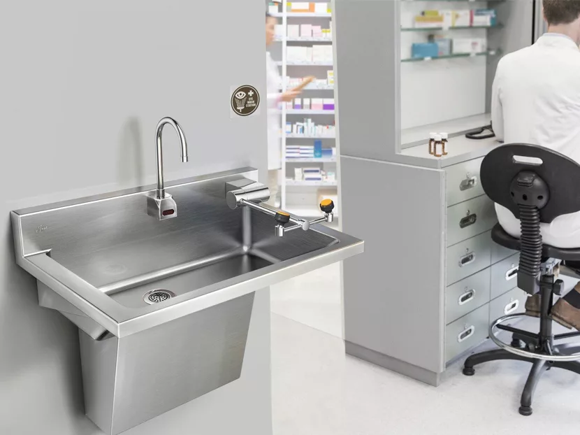 These scrub sinks are usually stainless steel or other approved antimicrobial alloy. They have a shape that minimizes water splashing and includes hands-free technology via sensor or other hands-free interfaces (i.e., foot pedal or knee plate). When it comes to the sensor, how is it best applied to these types of sinks? What considerations must be made when considering a sensor faucet for a surgical scrub sink?