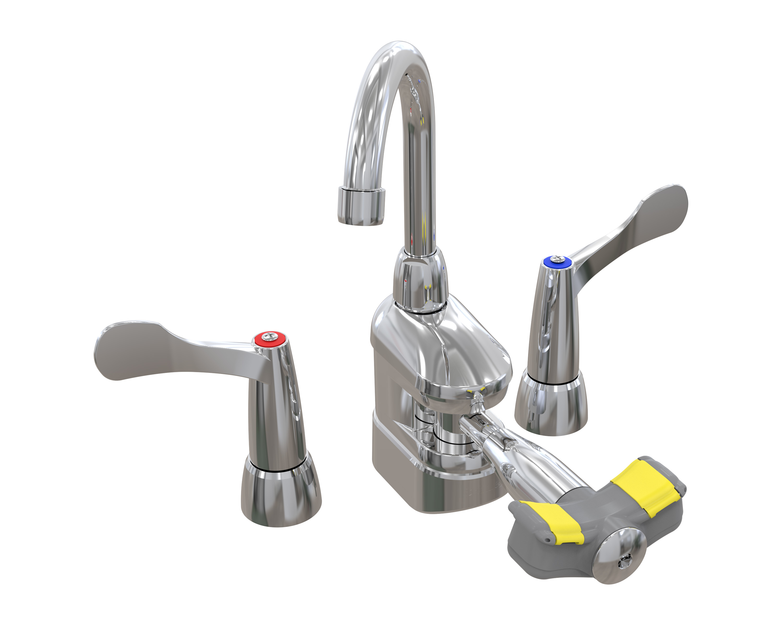 For facilities such as laboratory environments, a new generation eyewash model combines a sink faucet with a built-in eyewash for emergency eyewash use, offering a convenient space-saving solution.