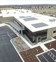 Energy and atmosphere savings in the facility promote better building energy performance through innovative strategies including on-site renewable energy, enhanced commissioning and green power. Uponor elected to incorporate onsite renewable energy by installing a Photo Voltaic Power (PVP) solar array. The roof mounted solar array provides electrical power for specific lighting within the facility, as well as for charging certain battery powered equipment.