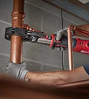 The M18 FORCE LOGIC Press Tool is the smallest, lightest, and most intelligent press tool. Featuring a brushless motor for increased performance, its lightweight and in-line design provides unrivaled access. For improved productivity, users can open the jaw and activate the tool with one-hand. A pre-press battery check prevents the user from starting a press the tool cannot complete, while Auto-Cycle ensures a full press every time and indicates to the user via a green light that the connection is complete – 10 percent faster than other units on the market and with 20 percent more runtime per charge. The press tool and compatible jaws are designed to work with all major fitting manufacturers, currently compatible with 13 unique systems and continuing to expand.
