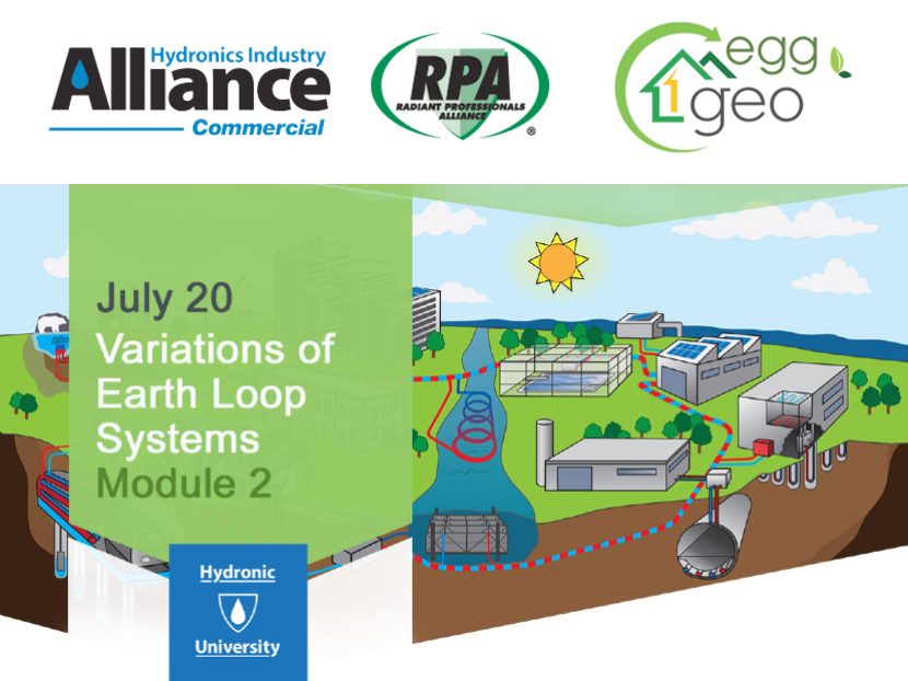 Registration is still open for the second module from Hydronic University, “Variations of Earth Loop Systems,” scheduled for July 20. This module will review dozens of different variations for geothermal exchange of building HVAC systems.
