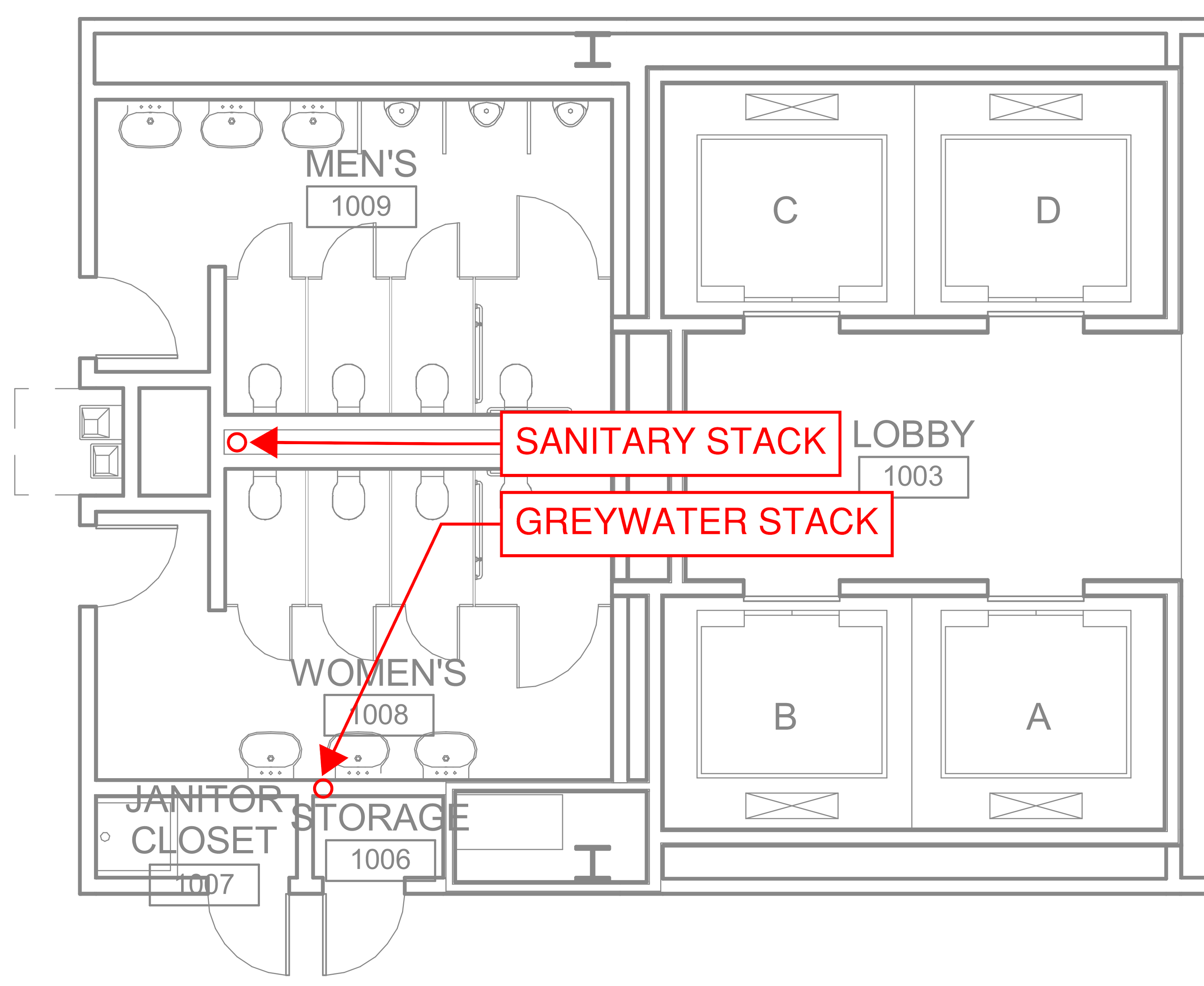 Greywater collection piping can be an added project cost, so it is important to work with your architect to plan restroom layouts where the lavatories are separated from water closets. This will help simplify the collection piping and routing in plumbing chases. (See Figure 1.)