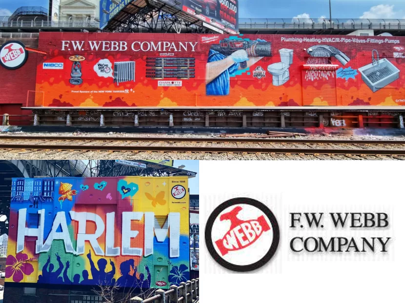 After months of planning, a three-wall mural on the F.W. Webb wholesale store in West Harlem, New York, is now complete. The exterior mural by renowned local graffiti artists Tats Cru took two and a half weeks to complete and covers three sides of the building at 2350 12th Ave. It visually represents F.W. Webb with images of plumbing and heating fixtures and PVF. It also highlights some of the brands that the location stocks.