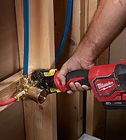 The M18 Short Throw Press Tool delivers force optimized for low force applications, and with the capability to complete 400 1-inch connections on a single charge, maximizes productivity while reducing cost of ownership for the residential installer. With the new press tool platform comes jaws unique to the new tool, the first of which are compatible with the Viega PureFlow Pex Press System.With no calibration interval, the new tool delivers consistency in installation over the entire life of the tool. A pre-press battery check prevents the user from starting a press the tool cannot complete due to insufficient battery charge, while Auto-Cycle ensures a full press every time and indicates to the user via a green light that the connection is complete. Powered by Milwaukee REDLITHIUM batteries, the new M18 FORCE LOGIC Press Tool is fully compatible with the entire M18 line, now offering more than 100 power tool products.