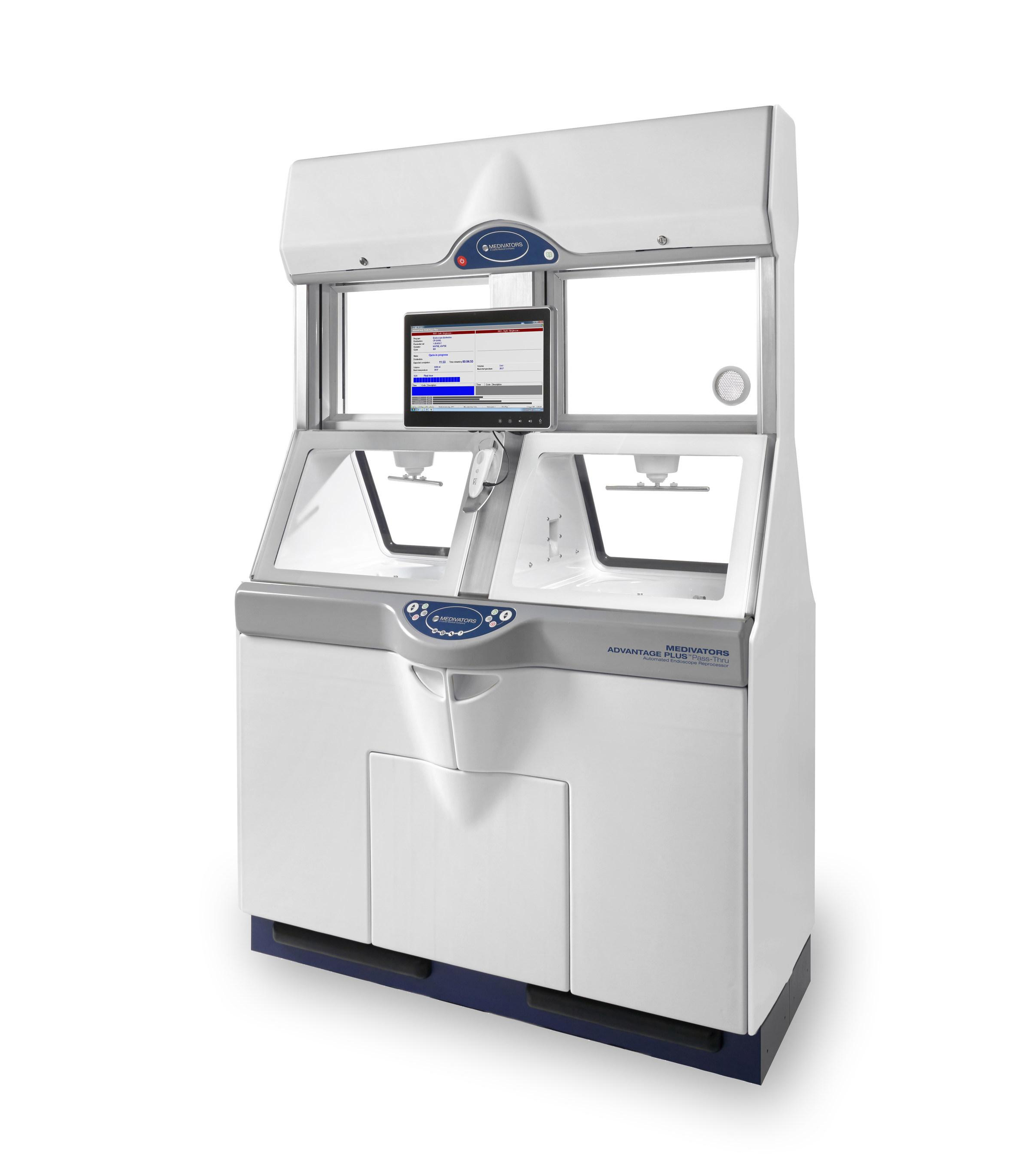 • Scope reprocessors. Since scopes have sensitive internal components, they cannot be sterilized by steam and aggressive chemicals. Scope reprocessors are medical devices that, instead, provide high-level disinfection for scopes using a bath of water and specialized chemicals. Some units are small enough to sit on a countertop, but dedicated digestive health centers will generally use larger units the size of cabinets that sit on the floor, as shown in Figure 5.