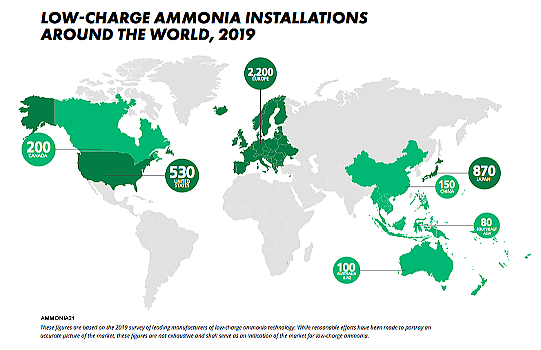 Another system has emerged from early C02 efforts that solves many problems — C02 combined with low-charge ammonia. Until last year I was not aware of how popular it has become all over the globe in a very short period (see map).