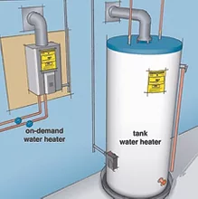 Let’s crunch some more data, and calculate the dollar savings of a storage heater vs. a tankless water heater. Assume the following options are available (new residential construction):