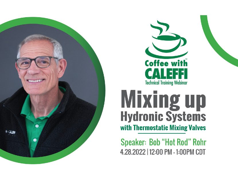 Coffee with Caleffi technical training webinars are free and intended for contractors, engineers, designers and wholesalers. By submitting your webinar registration, you are consenting to email communications to keep you up-to-date on industry news. It's easy to join! Simply register today.