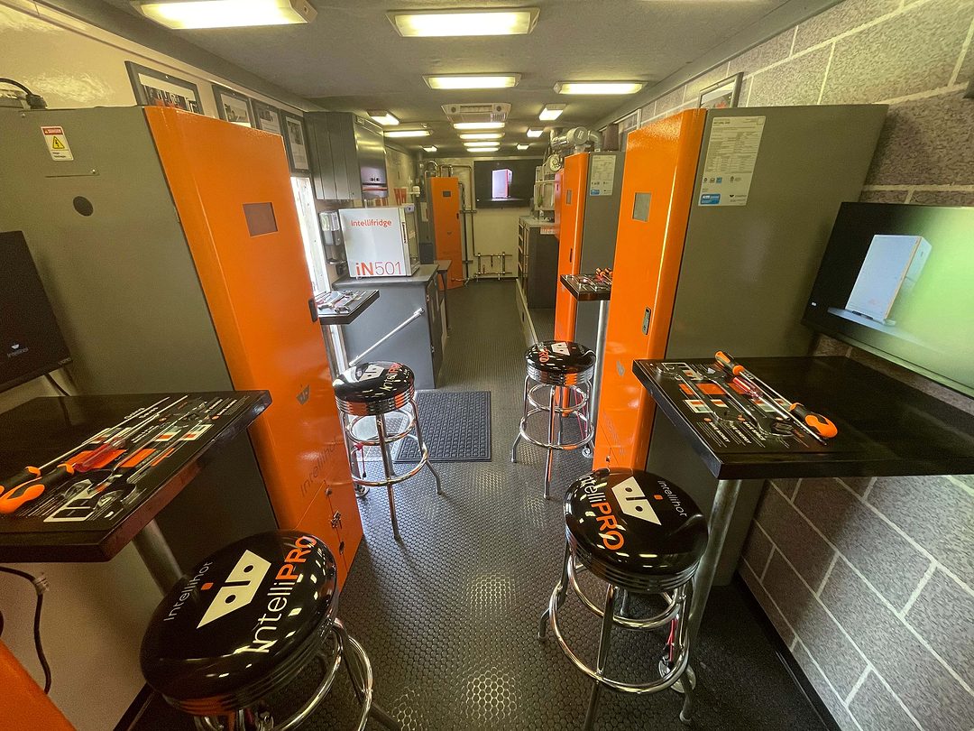“The idea began as a trailer,” says John Herrick, contractor network manager at Intellihot. “But it morphed into this.” This being a 40-foot long behemoth fashioned out of a MT55 Freightliner that Herrick and others at Intellihot turned into the water heater manufacturer’s first mobile training vehicle.