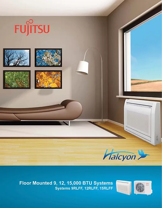 New York, NY. -Fujitsu offers new literature for both lines of their Energy Star®-qualified high efficiency, floor-mounted mini-split heat pump systems with heating that operates at ambient temperatures as low as -15°F (RLFFH line), or -5°F (RLFF line). Efficiency ratings are as high as 26 SEER.