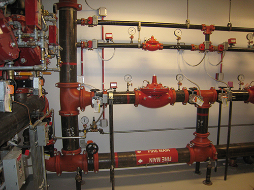 It’s our experience that it can be difficult to maintain a large PRV in an open position when testing the water flow switch on a sprinkler system with the flow equivalent to a single sprinkler. Implementing the low-flow bypass lines with smaller PRVs in Figures 1 and 2 resolves this issue and prevents potential water hammer to the sprinkler system caused by constant opening and closing of the PRV. In addition, it allows the jockey pump to operate more effectively to maintain the system pressure.