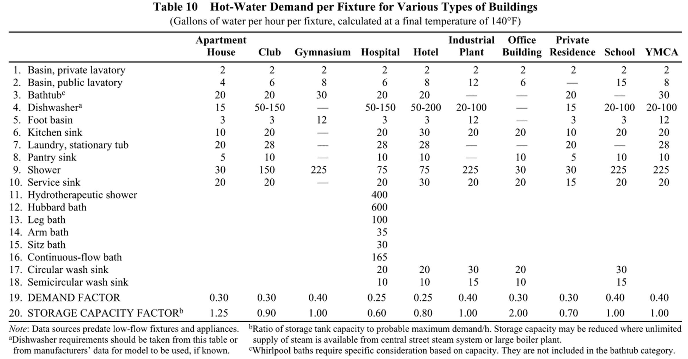 Consultants use multiple methods when determining water heating demand. The two methods we opt for at Henderson Engineers and Henderson Building Solutions can be found in the American Society of Heating, Refrigeration, and Air Conditioning Engineers (ASHRAE) Handbook.