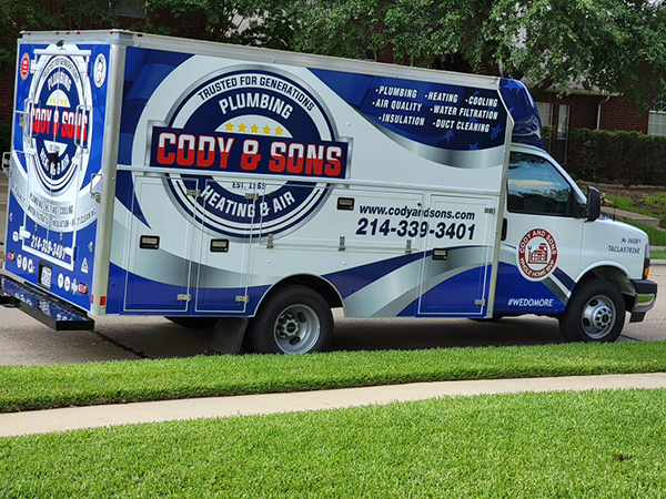 “Cody & Sons has been a trusted name in Dallas since its founding by Bill Cody in 1969. We developed a founder logo using his picture that is also included in the design as a tribute. It’s a little hard to see in the picture, but that’s Bill in the upper righthand corner in the back of the truck. This truck wrap tells a story of our evolution of how we honor our past while embracing the future—a blend of tradition, innovation and unparalleled service.