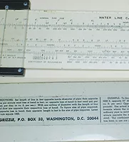 I was unable to find much in the way of information regarding the history of the Grizzle Stick or its inventor, whom I assume from the information on my stick is B. F. Grizzle. Based on the copyright date on the rule, use of the rule started in1944. It was first manufactured in wood. My rule is a later version made of plastic. A web search revealed that Lawrence Engineering Service, once a maker of all manner of slide rules, made this rule for B. F. Grizzle. The Grizzle Stick slide rule performed one simple task, the calculation of friction loss in a section of pipe. Given the pipe diameter, length of pipe and flow, one could determine the head loss.