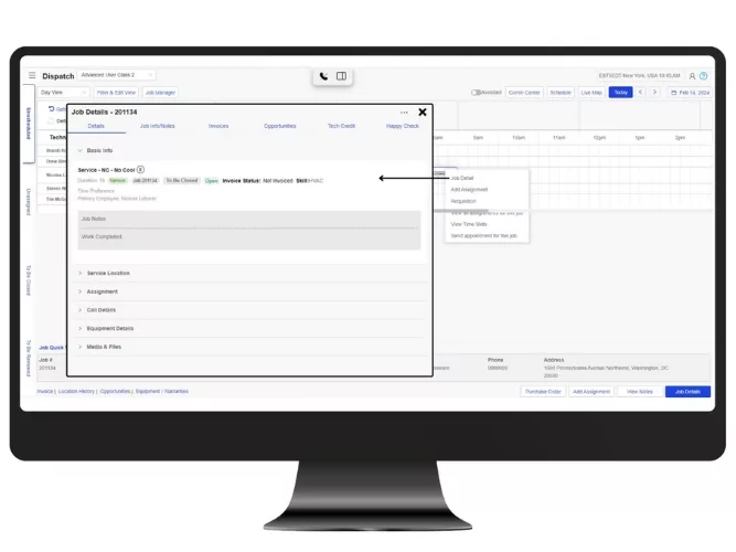 - Tailor dispatch notices - Send each technician a list of their jobs for the day, or send a communication by job to the assigned technician, all directly from the dispatch board