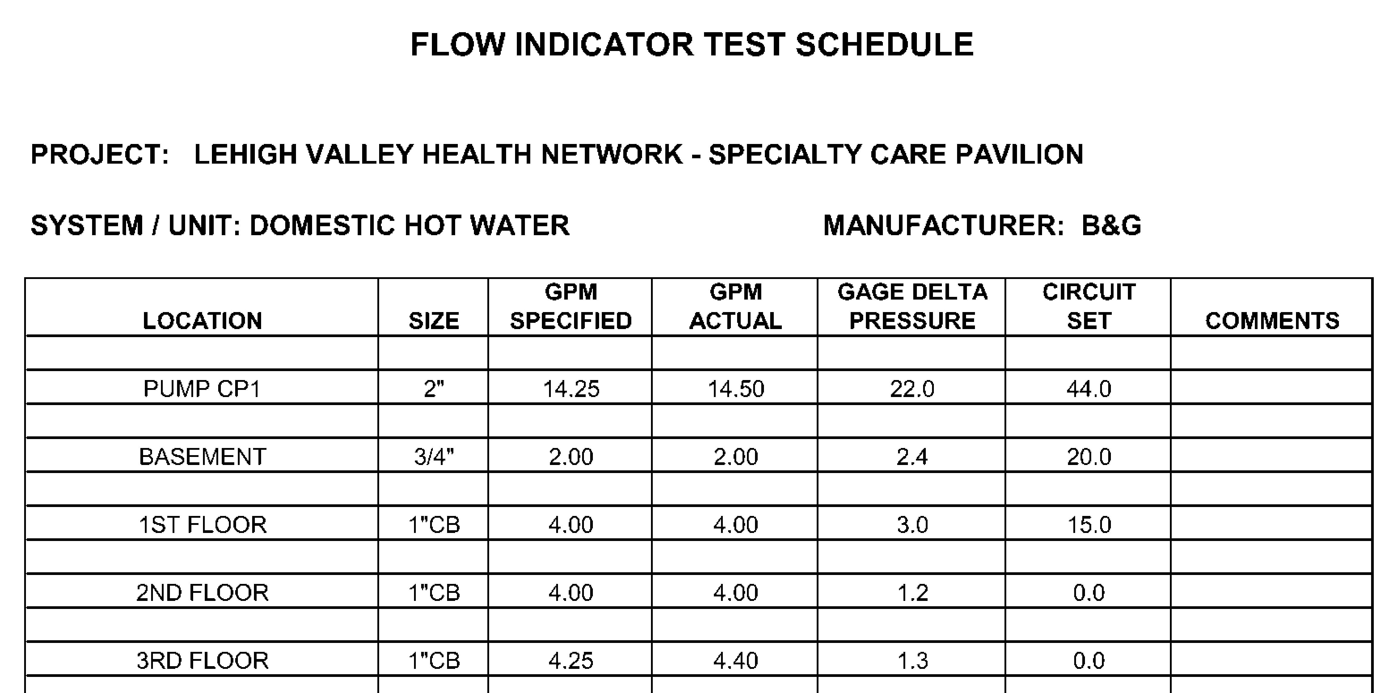 While some contractors still prefer manually adjustable balancing valves because they’ve used them for years, more are eager to use one of the other types to eliminate balancing completely. Even so, if there is a chance of manually adjustable valves being installed, you should require the contractor to submit a balancing report (Figure 9) near project closeout.