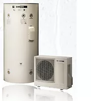 SANCO Heat Pump Water Heater provides efficiency and performance using a natural refrigerant, carbon dioxide. The SANCO Heat Pump Hot Water Heater is a split-type heat pump water heater (HPWH) system comprising an outdoor heat pump unit, with a R744 (CO2) refrigerant-to-water heat exchanger producing hot water at approximately 150 F, which is then stored in a separate indoor tank, and mixed with cold water for domestic hot water use in the home. Features high energy factor (EF) and first hour rating for HPWHs, and can operate in ambient temperatures below freezing. The SANCO unit can also be used for heating via a separate hydronic heating system. Sanden Water Heaters.