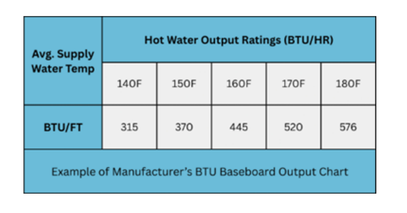 For example, if you have a room with 12 feet of baseboard with 180 F supply water temperatures, you might need 16 feet with 140 F supply water temperatures (see Figure 2).