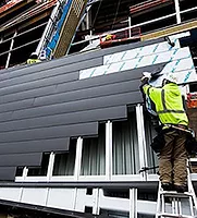 The new stadium's pitched roof will allow snow to slide off into catch basins and it will also have a unique snow melt system installed into the roof designed by Uponor.