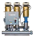 The TechnoForce e-HV packaged booster system incorporates Hydrovar motor mounted variable frequency drive to transfer and increase the pressure of clean water in hospitals, industry, hotels and other facilities. The booster system contains Multi-Master configuration that ensures if one pump fails, the others will take over to deliver continuous pressure. It also has a main system disconnect and individual electrical pump isolation to guarantee each pump can be serviced without shutting down the entire station.