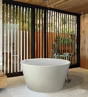 The Halo bathtub sports a compact design, therapy options and a deep bathing well for full-body immersion. And it’s eco-friendly, with a resin that's formulated with a renewable bio-derived and/or recycled content. Measuring 52" x 52" x 26", its relatively small footprint consumes little floor space, making this freestanding tub an ideal choice for rooms where space is at a premium. White or biscuit with an optional gloss finish.