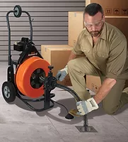 The lightweight Sewerooter T-3 packs the power, portability and capacity to clear clogs from 2" to 4" diameter lines up to 100 ft long. Optimized for inside work, the Sewerooter T-3 features a fold down handle and tough, reinforced tubular frame on big 10" wheels for easy transport to and from the job. Especially effective on tough blockages, the labor-saving power cable feed provides maximum feed control of 1/2" or 3/8" cable. The accompanying guide tube and optional extensions prevent cable whipping and kinking. Powered by a heavy duty 1/3-hp capacitor-type motor with thermal overload protection, the Sewerooter T-3 sports a rugged powder coated metal drum with a capacity of 100' of 1/2" Flexicore cable. Quick and easy to remove, the design features an inner drum to prevent cable tangling under load.