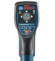 The D-tect 120, an easy-to-use detector with reliable radar technology, features spot detection technology that can detect objects instantly when placed on a wall or floor. It not only detects objects that are right below it, but also indicates to the user through arrows the direction of nearby objects. The spot scan helps when scanning brick walls or tight spaces. Electronic "traffic light" indicators make detection straightforward and simple – green, nothing detected; orange, something is close; red, object detected. It can be used in a variety of applications in three modes: drywall, universal and concrete. Other features include an unshielded AC warning to avoid drilling into live wires, a center finder to indicate an object's center for locating precision and measuring depth up to 4-3/4". Detection of all materials includes water-filled plastic pipes.