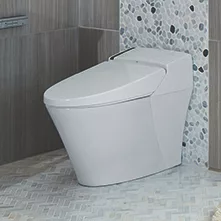 The AT200 SpaLet Smart Toilet is a dual flush toilet that offers a range of features to enhance the modern bathroom environment. With its multiple features housed in a compact, streamlined, ergonomic form, this fixture is completely at home in today's most distinguished interiors. Luxury conveniences such as hands-free flushing, automated lid opening and closing, and seat heating join a completely adjustable two-nozzle water-spray system with integrated air dryer to create a state-of-the-art toilet that delivers the ultimate in performance and efficiency.