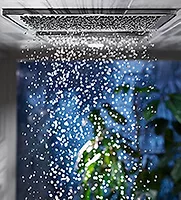 Kohler has created Real Rain, a showering experience that emulates the feel of a warm rain shower. The look and feel of natural rain is accomplished in numerous ways. First, an innovative sprayface design has a unique nozzle geometry that simulates rain by adjusting the size of the water drops. The rates at which the drops fall is also varying and random.