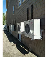 DiversiTech’s heavy-duty 12-guage steel brackets, mounted on the outside of the building, are holding Fujitsu condensing units for mini-split systems that provide indoor comfort for all who use the lodge.