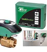 Taco’s new LeakBreaker is a water heater leak protection device that guards against flood damage from a leaking water heater. It consists of a control unit, a valve with actuator and a sensor.