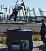 On a Thursday morning in April, three days before Easter, it was time for the installation. A crane lifted the old air conditioning unit off the roof.