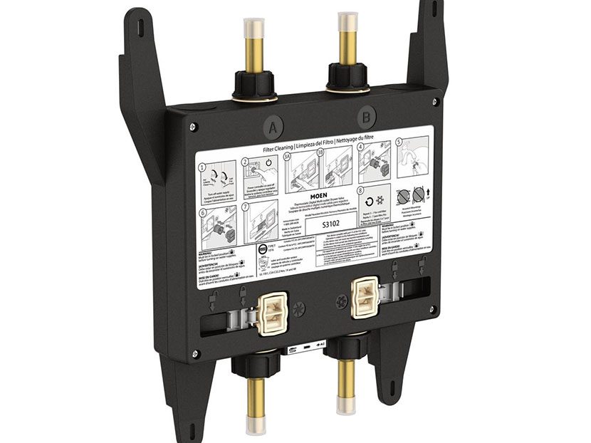 The shower includes a digital valve that offers temperature control, and enables the user to connect up to four shower devices (showerheads, handshowers, body sprays, etc.). The Wi-Fi-connected digital shower controller features a five-inch, non-touch, LCD screen that provides feedback on the shower status through on-screen messaging and notifications.