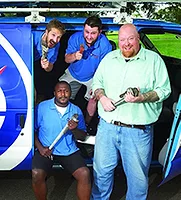 Owners Alex Moore, Johno Cain and Brian Kerns met during a comedy tour, but now work to keep the Fredericksburg region’s plumbing systems in order. The fourth owner, Demarcus Murray, came on board later.