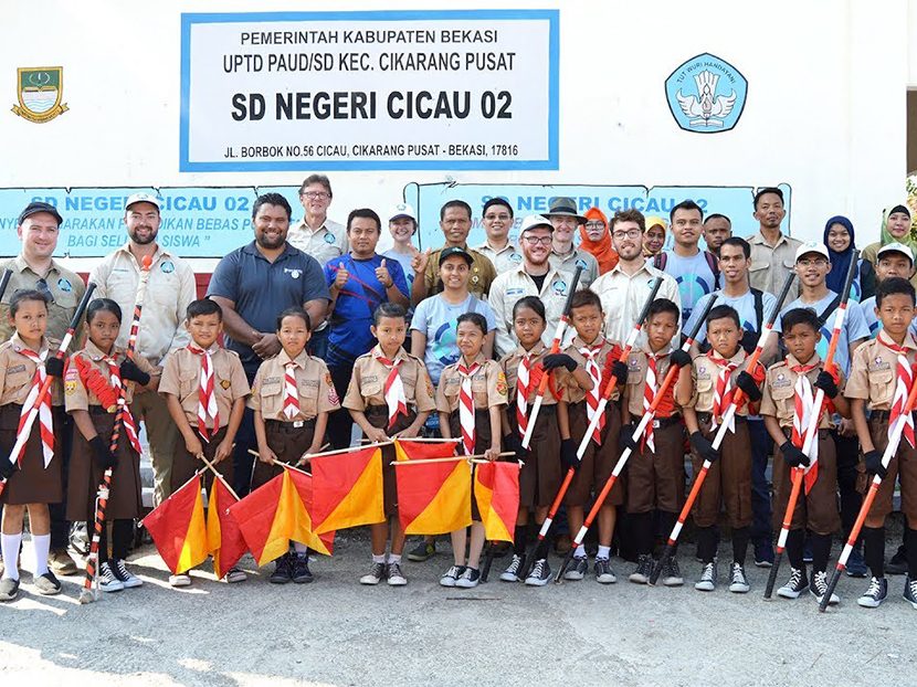 During Construction Week, an International Team of plumbing professionals – plus trades including bricklaying, welding and carpentry – from across the world increased the number of toilets; constructed a new hand-washing area; installed two new elevated water tanks; and installed a new wastewater system at Sekolah Dasar Negeri (SDN: “Public Elementary School”) Cicau 02.