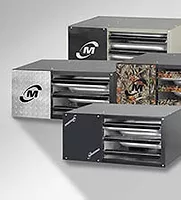 It’s the ultimate final touch for a garage or workshop: a customized unit heater, available now in camo (“Huntin’ Dawg”), diamond plate (“Diamond Dawg”), carbon fiber and satin black.