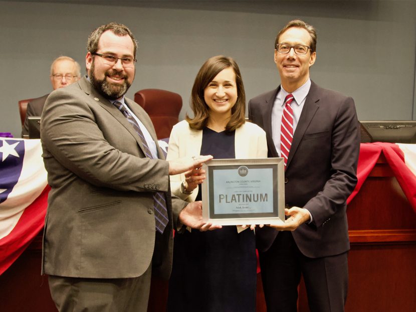The Arlington County Board celebrated the Platinum certification at its December 19 meeting, which also marked the retirement of sustainability advocate and long-time County Board Member Jay Fisette.