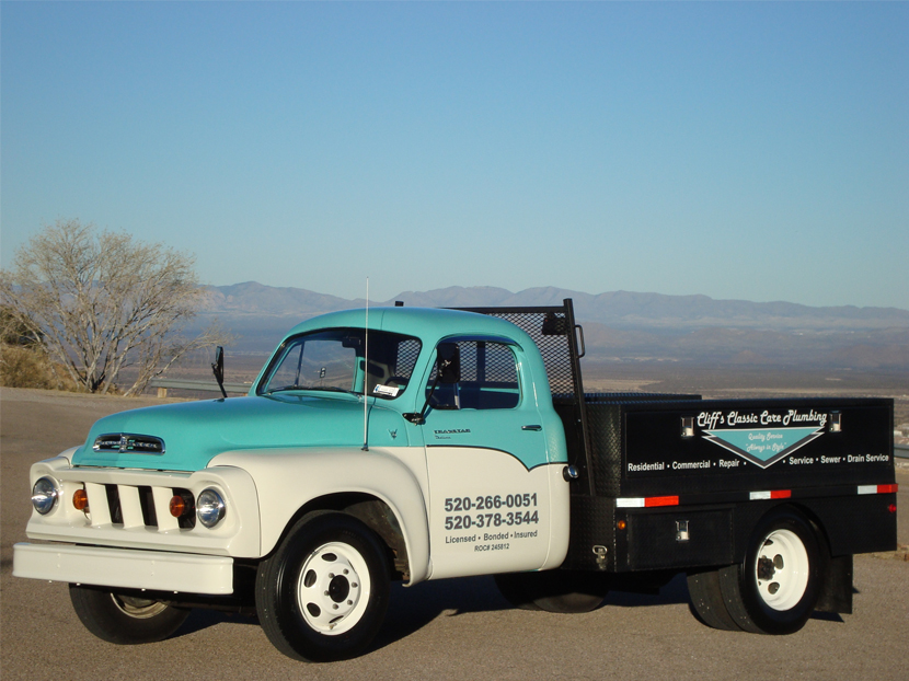 We drive a 1957 Studebaker Transtar one-ton work truck for our plumbing business located in southeastern Arizona. Cliff Lao is behind the wheel five to six days a week. This truck came from the factory with a V8 motor, power steering and a five-speed overdrive transmission. She is painted in our company colors of 1950s teal and cream and has a custom-built bed with 8-ft long by 2-ft deep by 18-inch high removable toolboxes on each side, which houses the tools and parts Lao needs to complete his plumbing jobs. The reason we went with a classic truck is because it advertises for us and is always a conversation starter. It is not unusual for Lao to be pulled over several times a day by potential customers who absolutely love the truck and want a better look at it.
