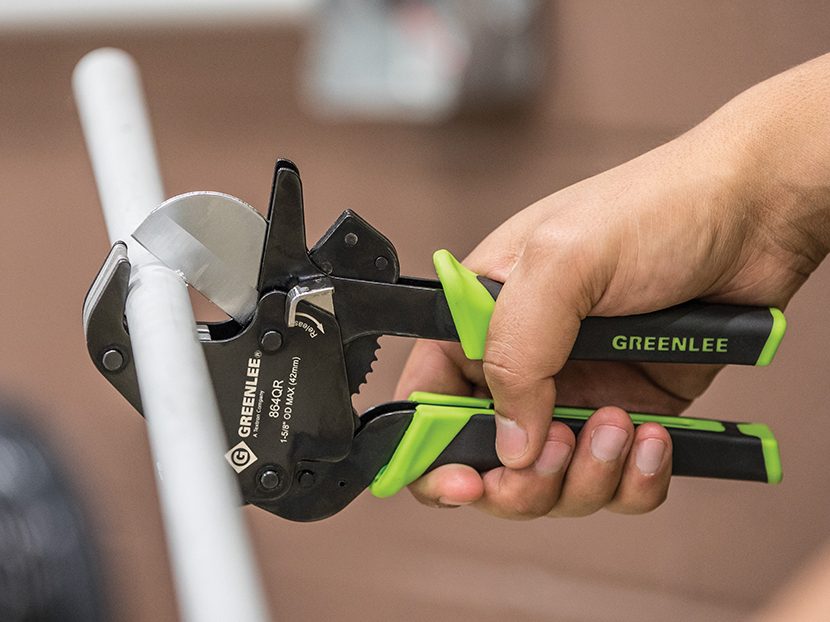 The 1 5/8-inch O.D. PVC Cutter features comfortable rubber grips and a shorter handle span that reduces the required handle force for easy ergonomic cutting of PVC.