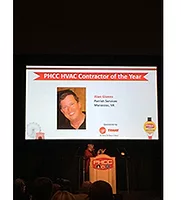Alan D. Givens, president and owner of Parrish Services, Manassas, Virginia, recently received the "PHCC HVAC Contractor of the Year Award" given annually by the Plumbing-Heating-Cooling Contractors-National Association and Trane, a brand of Ingersoll Rand.