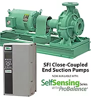 New SCI close-coupled end suction pumps, and SFI frame-mounted end suction pumps provide superior reliability and ease in installation for heating, air conditioning, pressure boosting, cooling water transfer and water supply applications. All meet the latest standards for hydraulic performance and dimensional characteristics for quiet, dependable performance.
