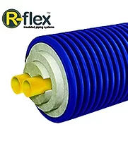 R-flex consists of a long-lasting PEX carrier pipe or pipes surrounded by thick insulation layers, all contained in a unique double-wall outer casing for maximum protection. The use of the polyethylene foam insulation and the double-wall outer shell makes R-flex very flexible. Its flexibility, combined with its light weight, make R-flex far easier to install than rigid piping systems.