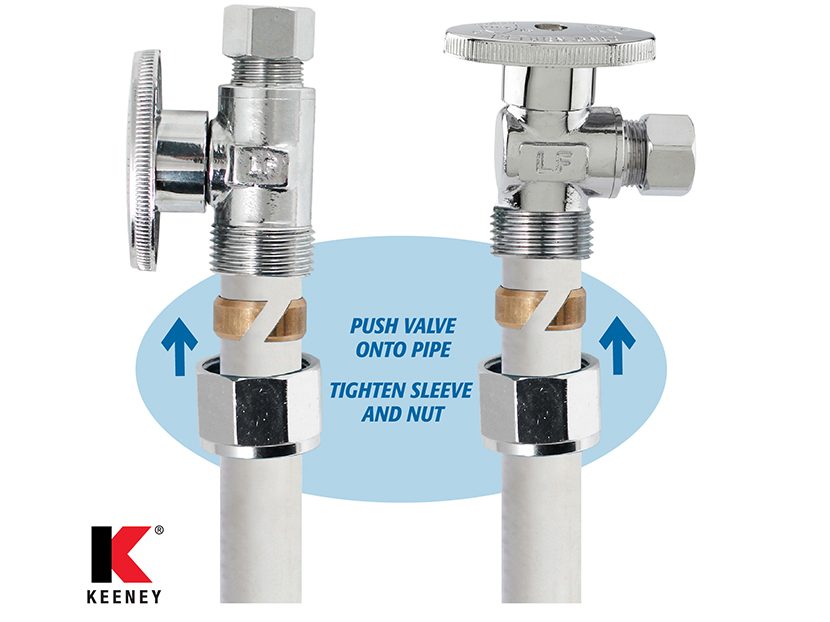 No Crimp PEX Valves are push on quarter turn valves with a compression sleeve that allows for a quick and secure connection that can be created with simple hand tools.