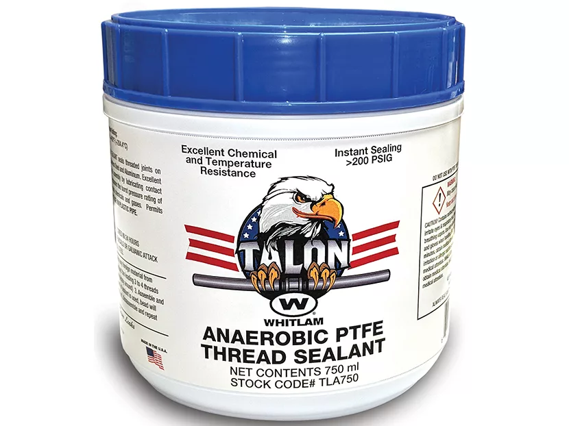 Talon Anaerobic PTFE Thread Sealant is a premium anaerobic thread sealant specially formulated for use on all types of metal threaded connections. It is a general purpose pipe sealant that provides instant seal with limited hand tightening. After cured, the sealing capacity is typically up to the burst rating of the pipe itself. The low locking strength and shear strength also allows easy disassembly. The product contains Polytetrafluoroethylene for added lubricity. This thixotropic sealant allows for readjustment prior to a complete cure, which makes it excellent for prefab applications. The productsprovides a leak free seal even when pipe is not completely seated. Anaerobic thread sealants cure on metal surfaces when air is absent, as is the case with metal threaded connections.