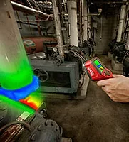 Designed from the ground-up with the professional tradesman in mind, the 7.8KP Thermal Imager gives users unmatched detail to view the quality of construction, inspect hard-to-evaluate systems, and understand the extent of damage instantly. Exclusive DUAL SENSE™ technology allows the Imager to individually optimize pixels to eliminate the blurring of hot and cold details in complex scenes. Equipped with 83:1 distance-to-spot performance, dual lasers, and hot/cold spot locators, users are able to quickly scan, target and capture temperature readings from long range or small areas.