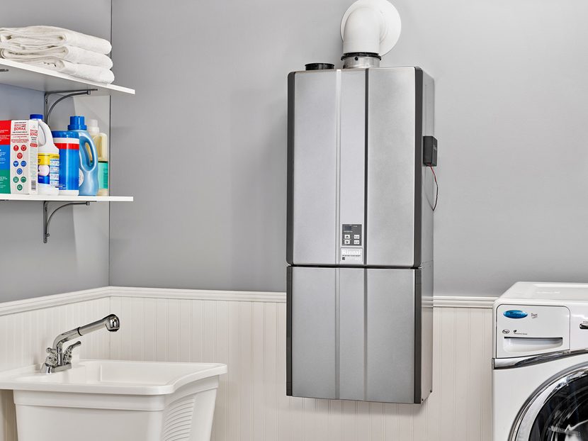 Saves space, too: A tankless water heater is about 1/5 the size of a typical storage tank. It’s about the size of a carry-on suitcase and it mounts on the wall. So not only will the unit save a ton of space, it no longer has to be relegated to a corner of the basement. Install it in the garage, the attic, a closet or even use an exterior model and mount it outside. A tankless heater means more room for homeowners.